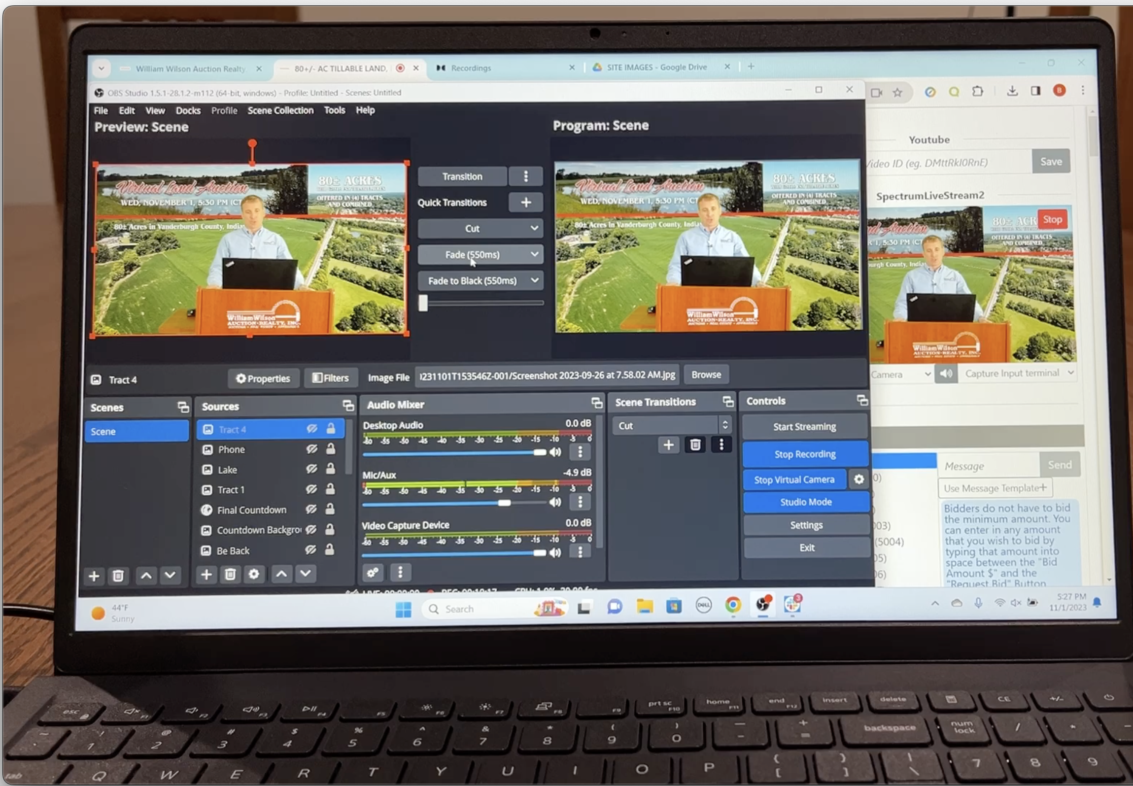 Our firm has pioneered virtual auction delivery, selling multi-million dollar properties utilizing our virtual auction studio. The bidding process is completed online only, with bidders competing for the highest bid. Bidders can use their computer or smartphone to enhance their experience. This user-friendly interface allows for seamless registration, pre-bidding, and real-time participation in the auction itself. During the auction, buyers have the convenience of viewing the auctioneer on-screen discussing the property in real-time. Bidders can also confidentially communicate with the auction team in real-time using a chat feature in the platform.